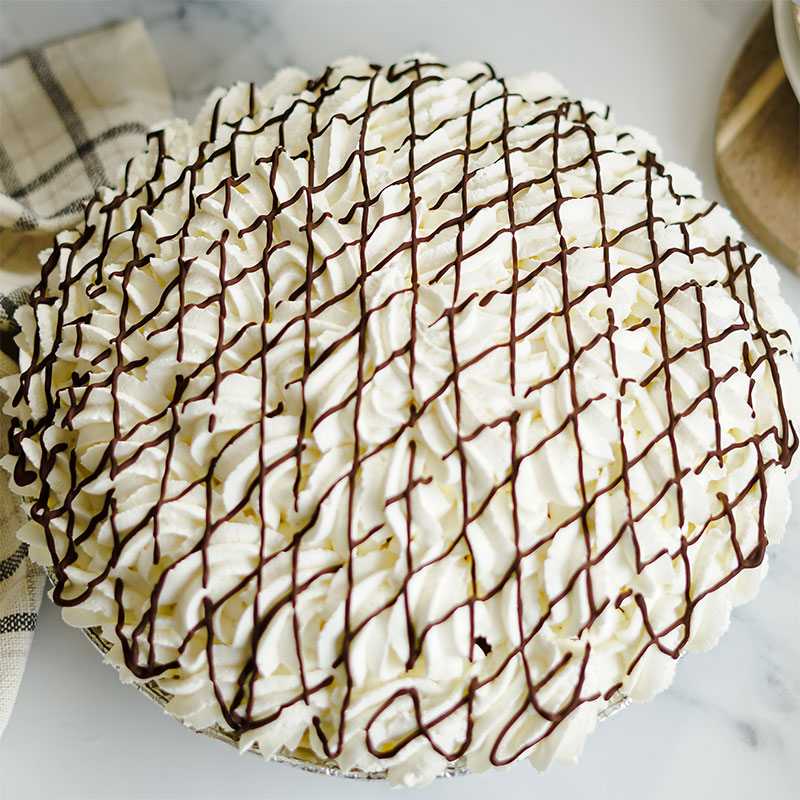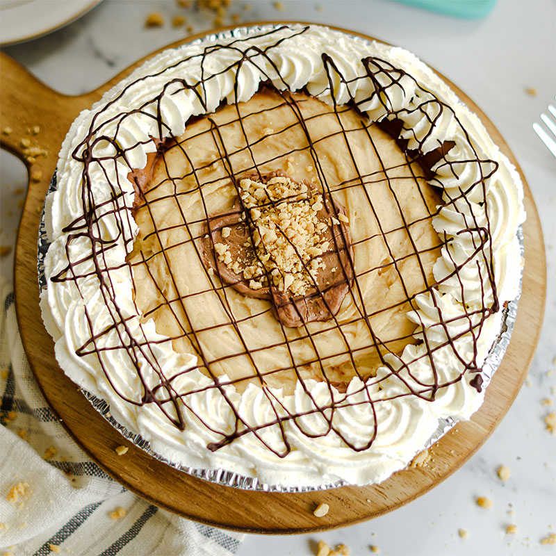 Our own creamy and smooth peanut butter recipe is sandwiched between two layers of rich chocolate in a chocolate cookie crust. Choose from two sizes - Small serves 6-8 and Large serves 12-16.